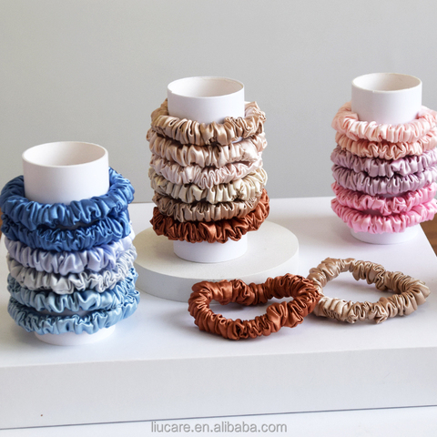 Küçük boyutu 16/19/22 momme ipek saç bağları 6A sınıf ile 100% dut ipek sıska scrunchies